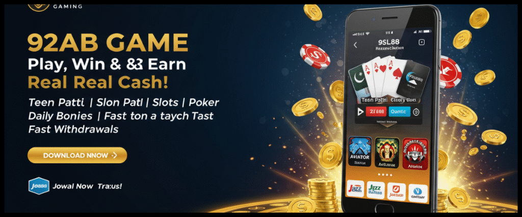 92ab Game is a real money gaming app in our digital journey. It is very popular in Pakistani people. Users play games and win real money for our direction. The app is supports for Android and iOS. It has many exciting fun games for players. These include slots, Teen Patti, and poker etc. The game is easy to use. were It offers daily bonuses and rewards. There are weekly contests too. Many players enjoy this platform daily earn easily games app. It has grown fast in recent years.